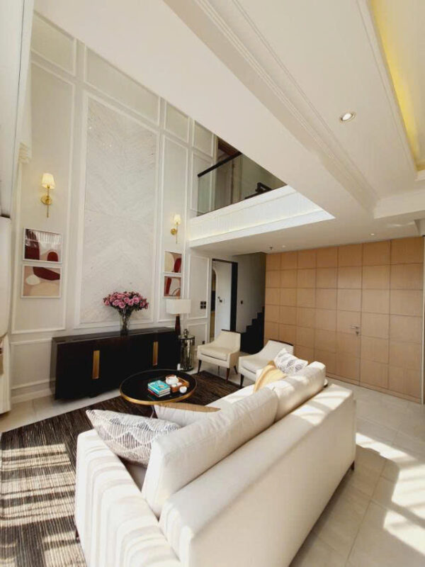 Điểm nhấn không gian: Sự kết hợp giữa các gam màu trung tính như xám, kem và các chi tiết kim loại mạ gold tạo nên sự tương phản đầy cuốn tính. Nội thất được tinh giản về đường nét nhưng chú trọng vào chất liệu cao cấp (da, đá tự nhiên, gỗ), tạo nên một tổng thể “vừa đủ” – không phô trương nhưng đầy khí chất.